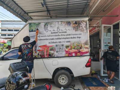 ออกแบบ + ติดสติ๊กเกอร์รถโฆษณา