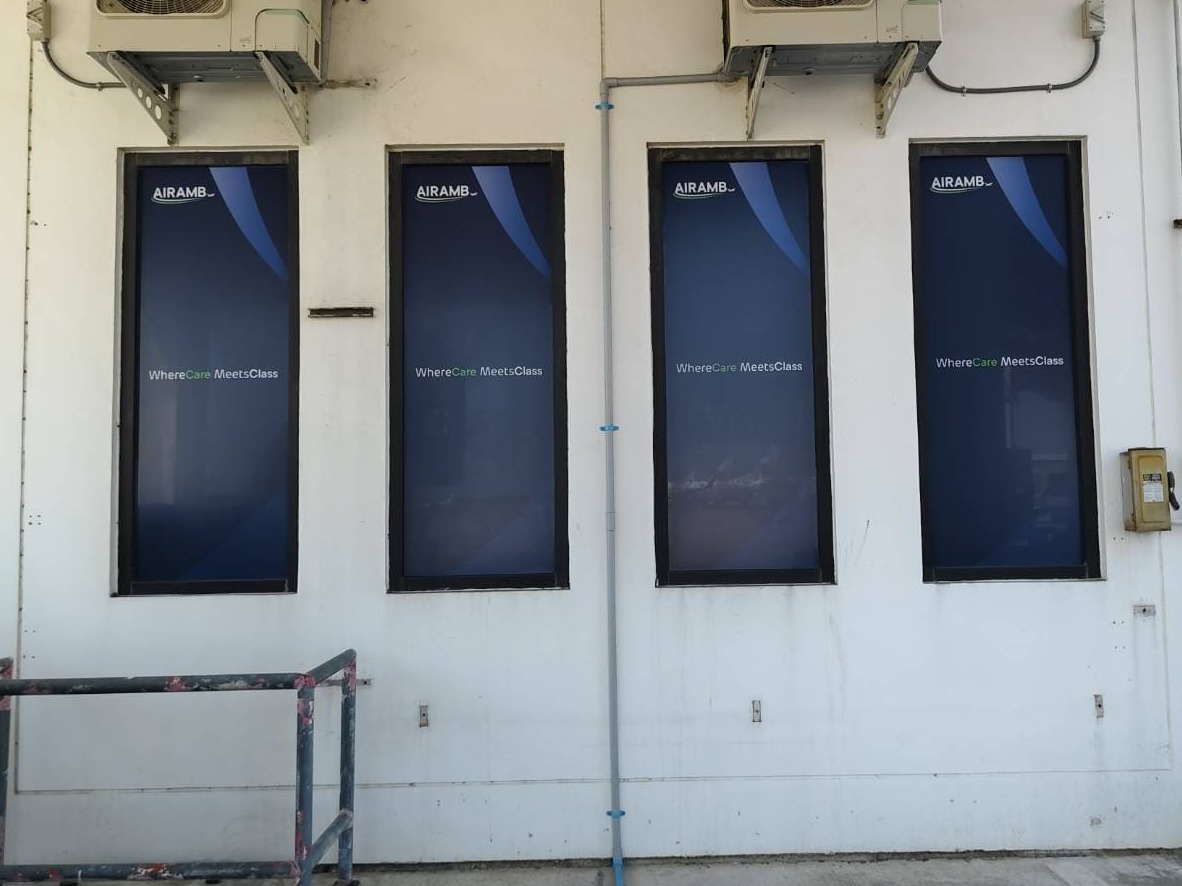 สำหรับกลุ่มลูกค้าที่เป็นเจ้าของอาคารพาณิชย์หรือตึกออฟฟิศขนาดใหญ่ การติดฟิล์มรูพรุนโฆษณาบนกระจกภายนอกตัวอาคารมีความแตกต่างจากงานติดกระจกทั่วไปค่อนข้างมาก เนื่องจากความสูง สภาพลมแรง และองศาของแดดที่ส่องลงมาแผดเผาตลอดทั้งวัน ทำให้ขั้นตอนการผลิตและการขึ้นไปปฏิบัติงานจริงต้องมีความรอบคอบและถูกต้องตามหลักความปลอดภัยเป็นอันดับแรก