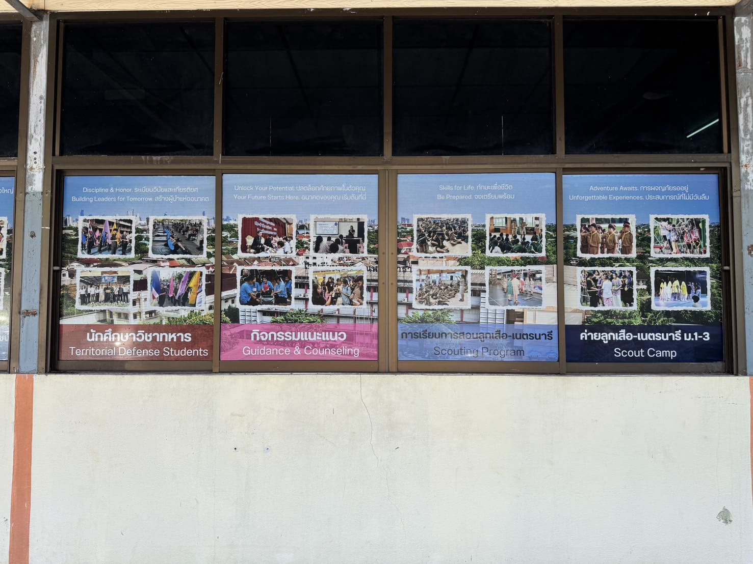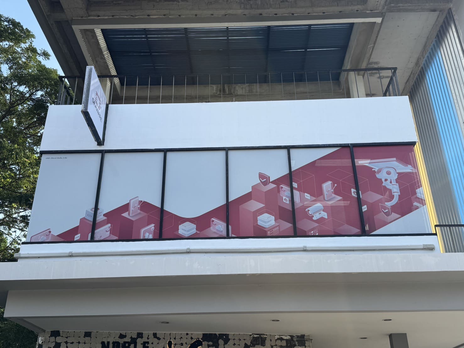 - สติ๊กเกอร์ซีทรูติดกระจกอาคาร : ตกแต่งกระจกโถงบันได หรือกระจกทางเชื่อมระหว่างชั้น เพื่อลดความร้อนและเพิ่มลูกเล่นให้กับตัวตึก