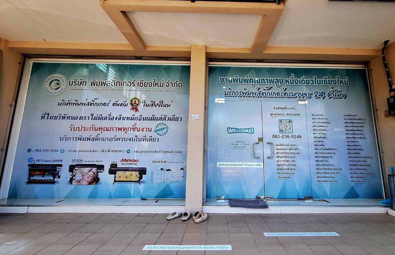 พิมพ์สติ๊กเกอร์ติดกระจกหน้าร้านแผ่นใหญ่ และงานไดคัทตัวอักษร